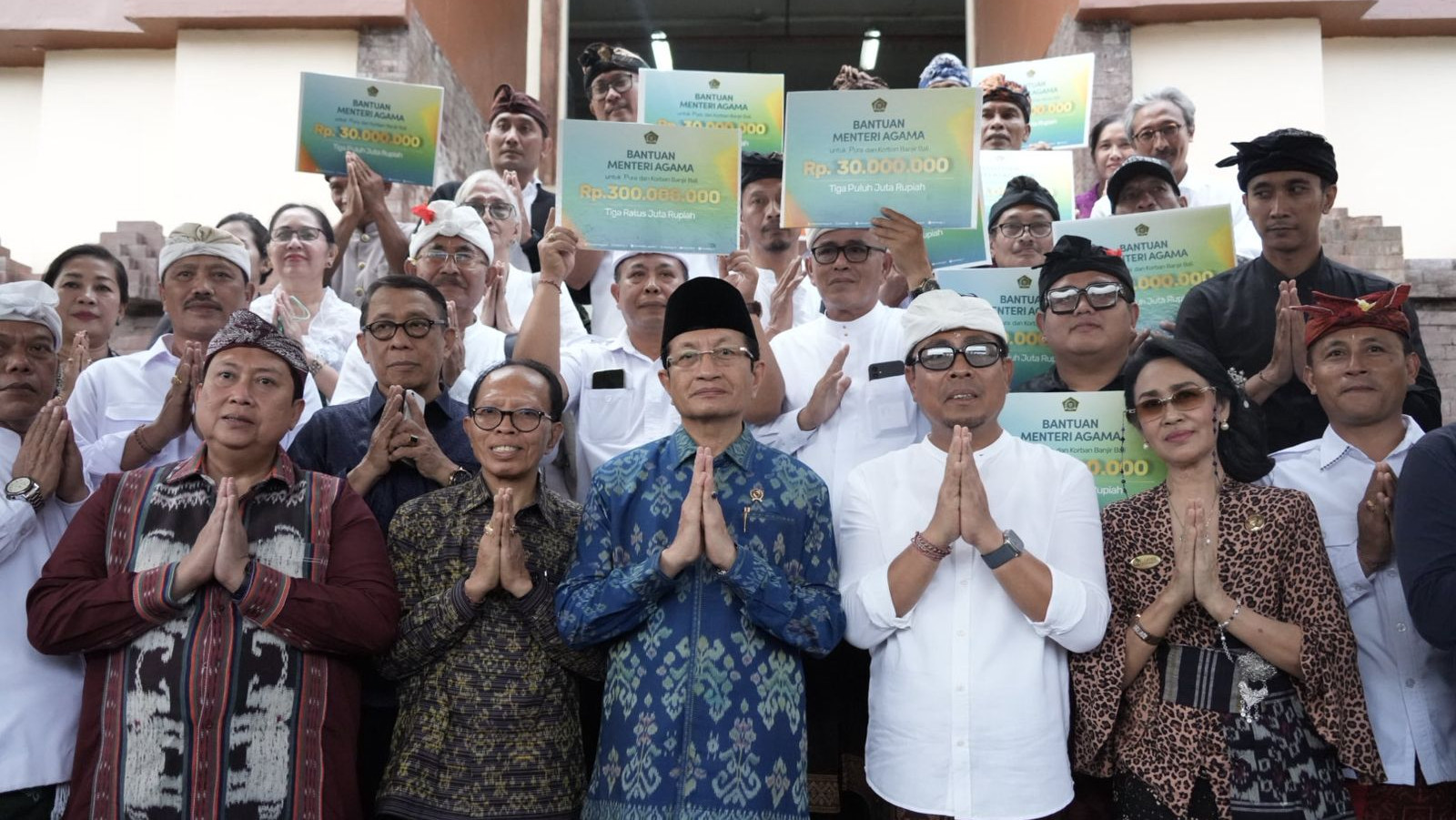 Dalam kesempatan itu, Menag menyerahkan bantuan sebesar Rp300 juta. Bantuan tersebut disalurkan untuk perbaikan Pura yang rusak serta meringankan beban korban banjir. Kunjungan Menag juga mencakup peninjauan ke Pura Taman Beji Pasar, salah satu tempat ibadah umat Hindu yang terdampak cukup parah.